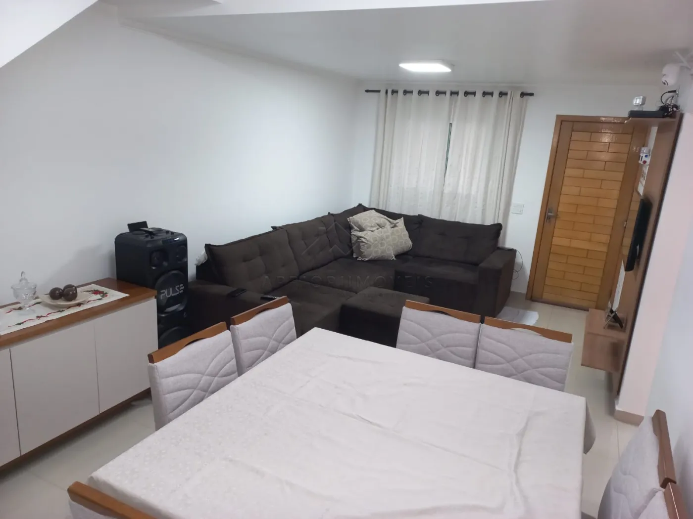 Sala de jantar e sala de estar integradas;