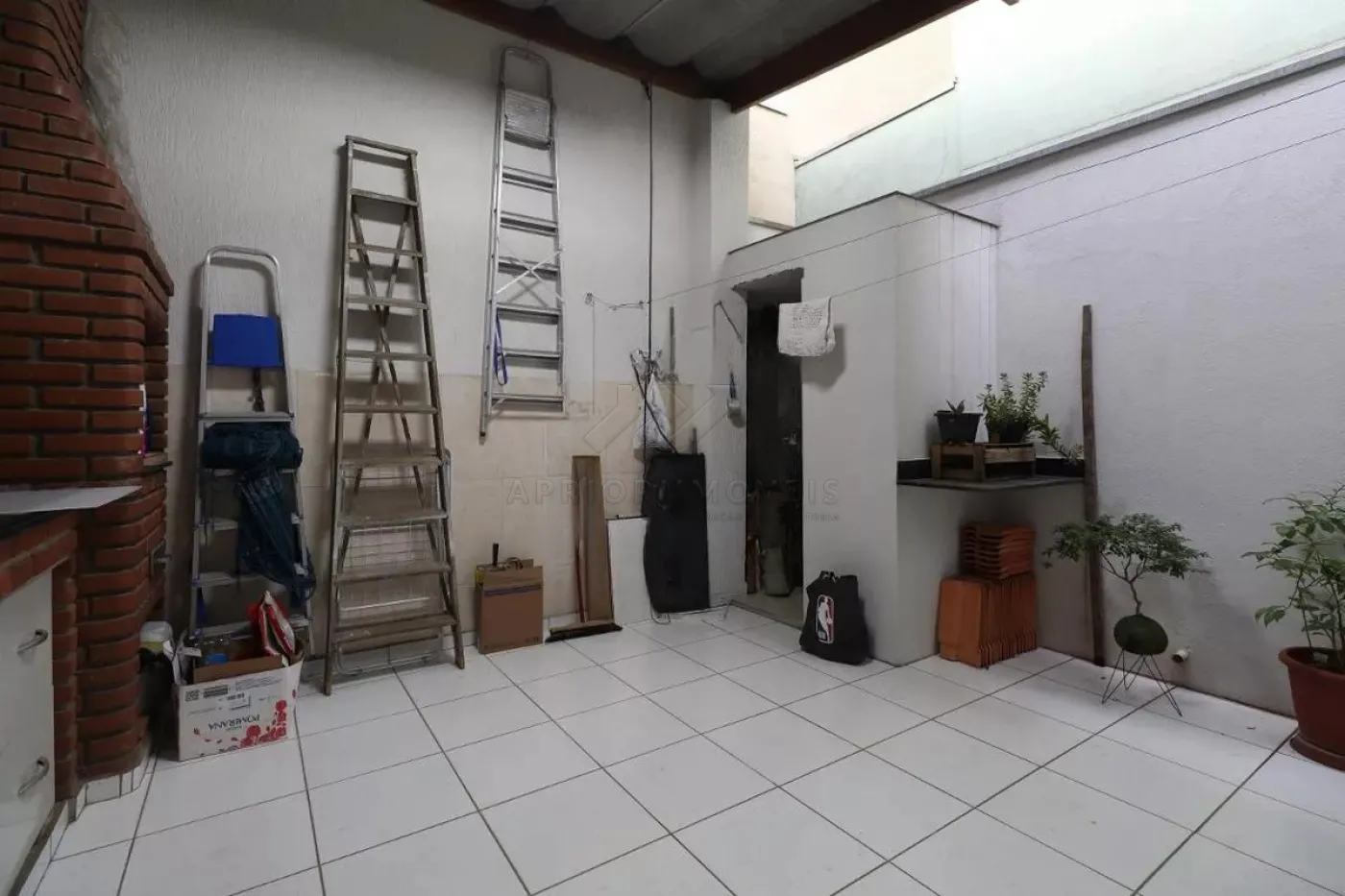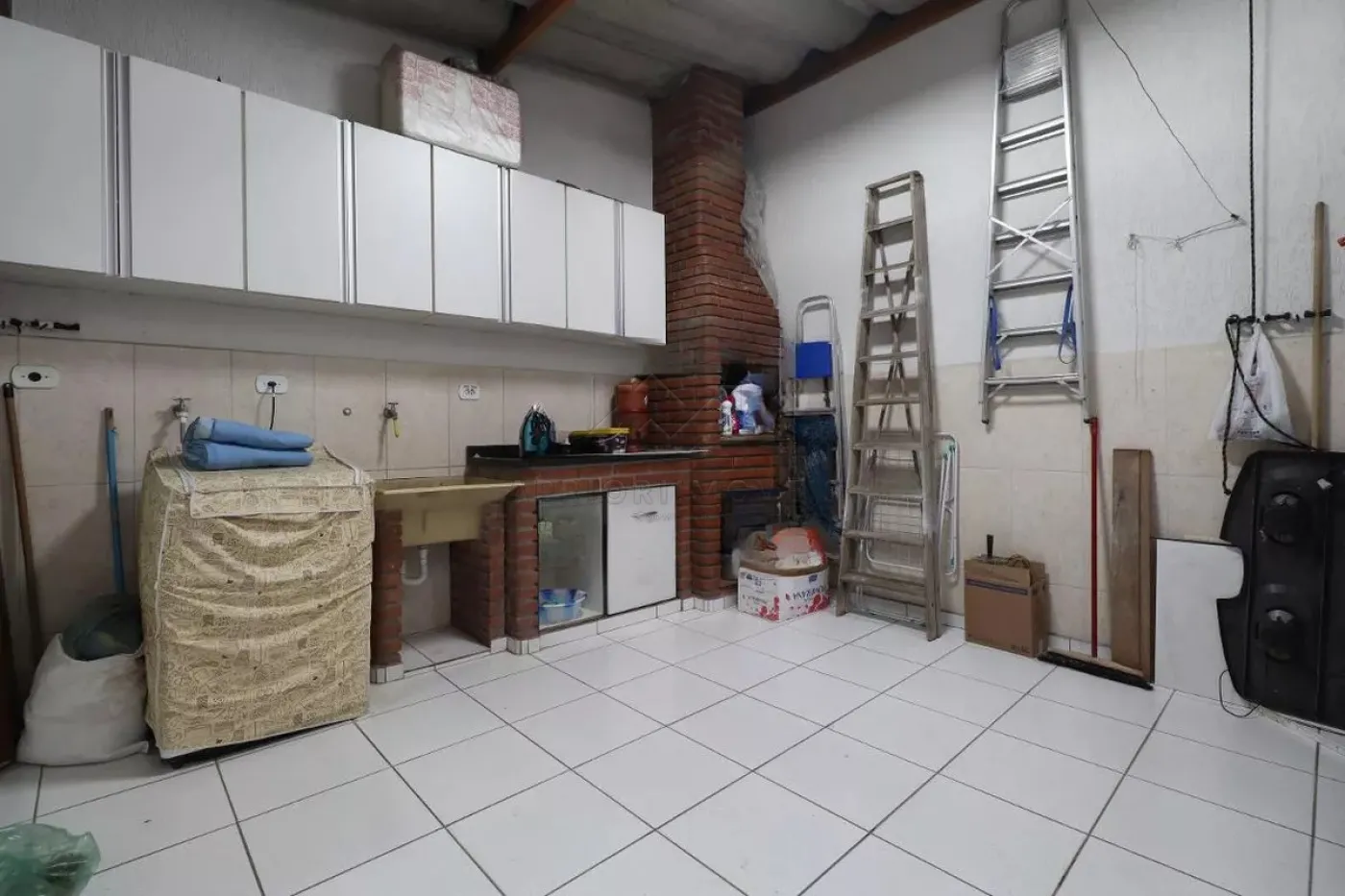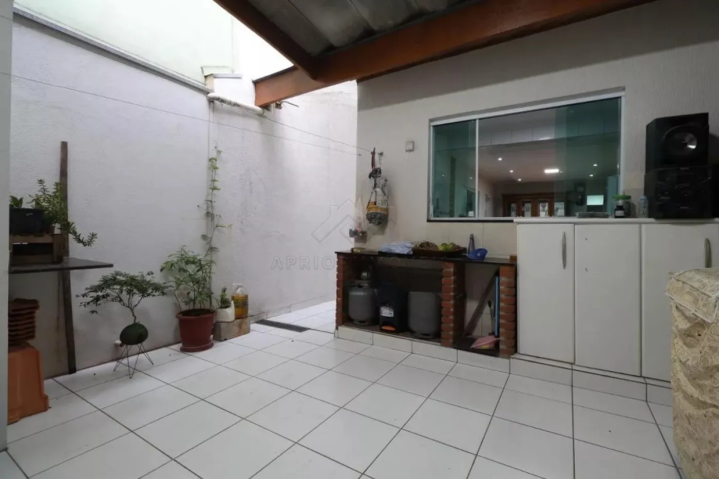 Corredor lateral para área gourmet com churrasqueira e despensa;