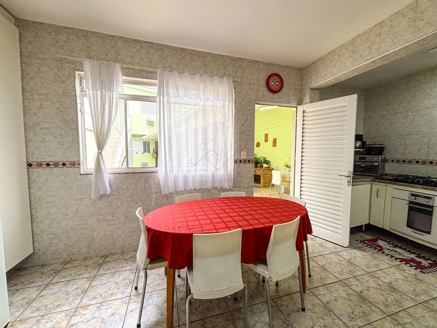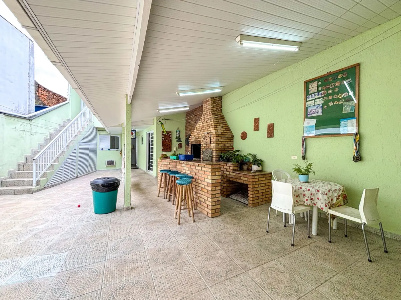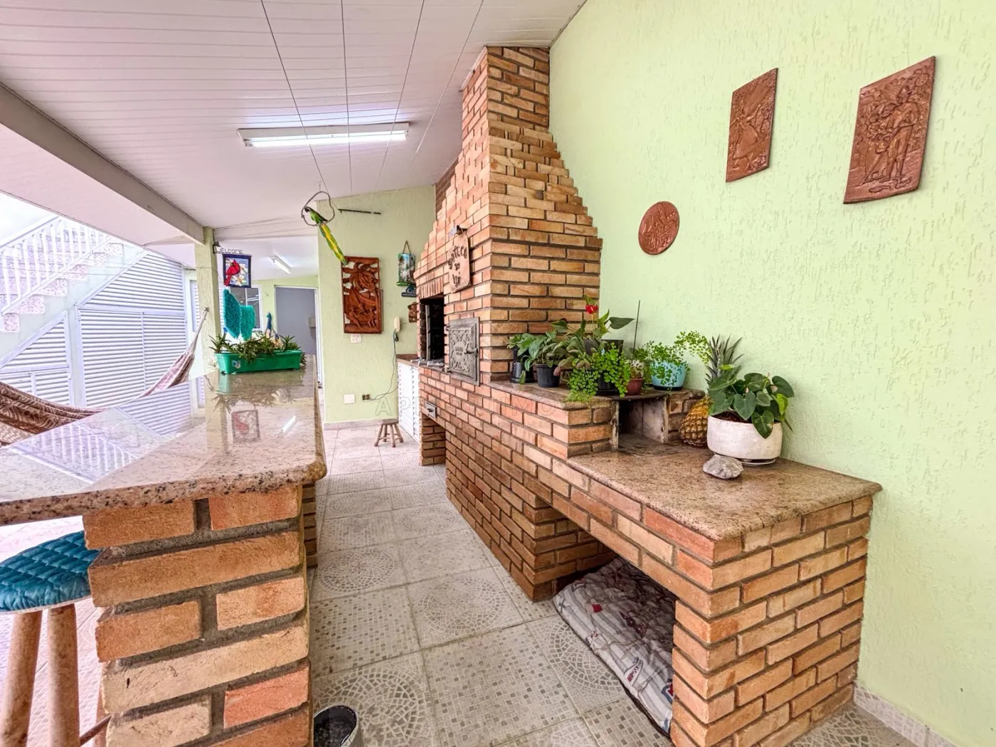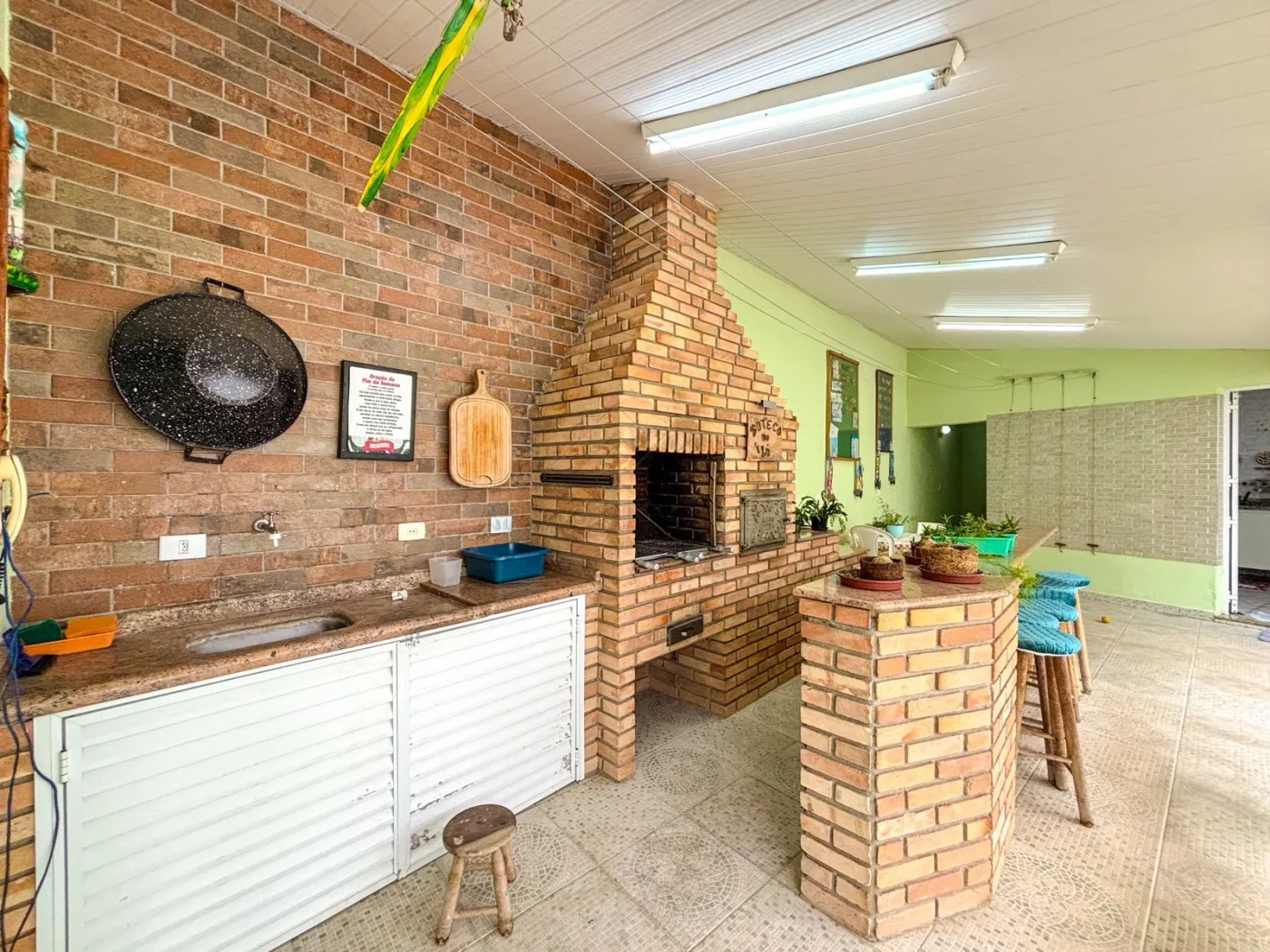 Ampla área gourmet com churrasqueira e forno nos fundos