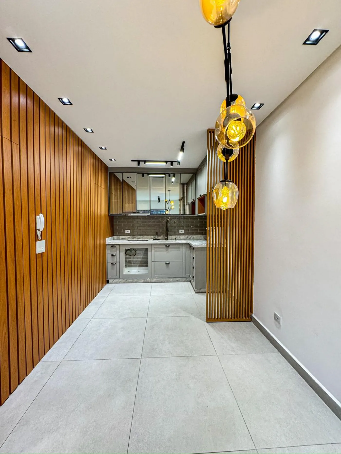 Teto rebixado com piso porcelanato