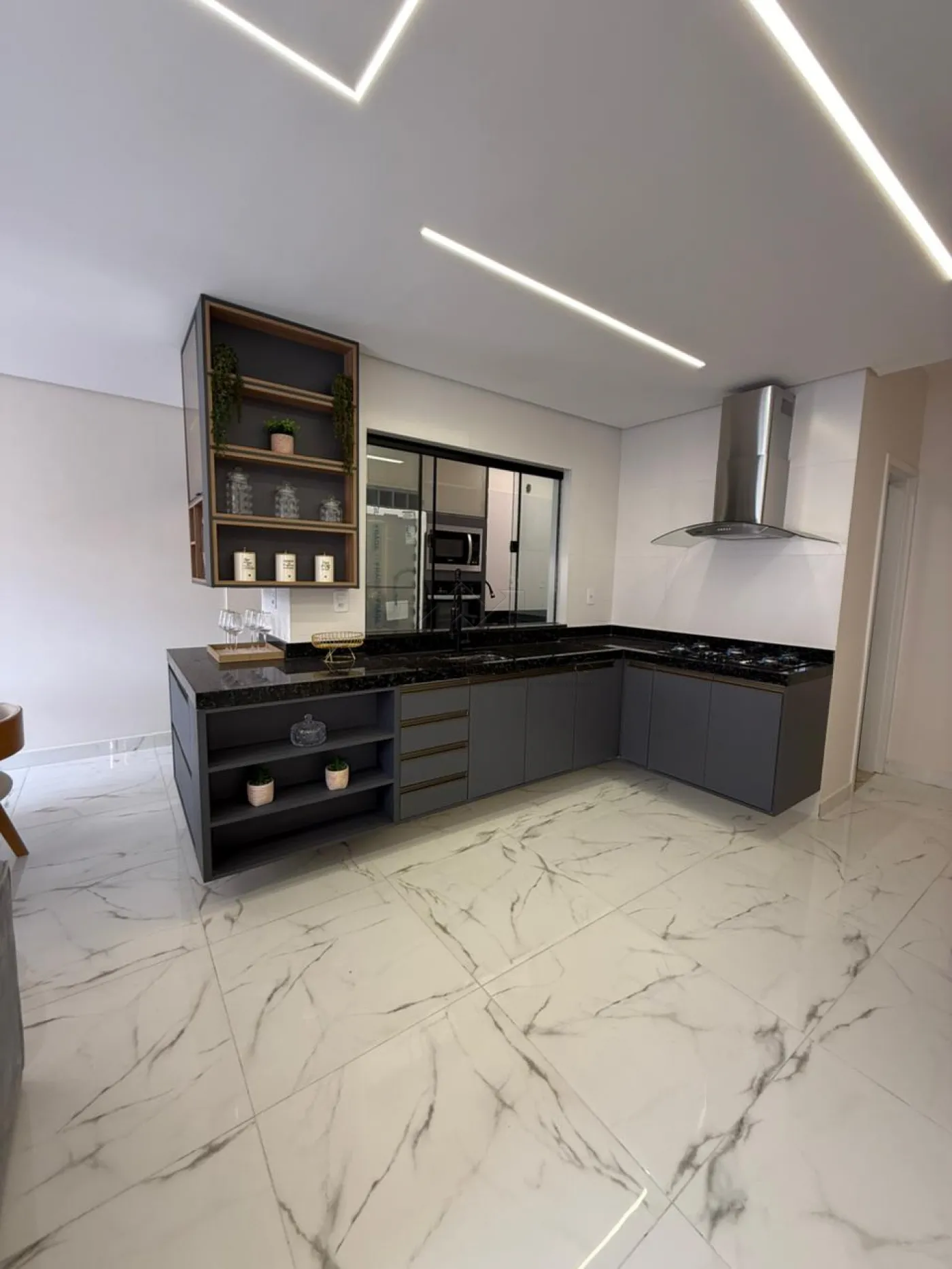 Cozinha com planejados, fogão e forno;