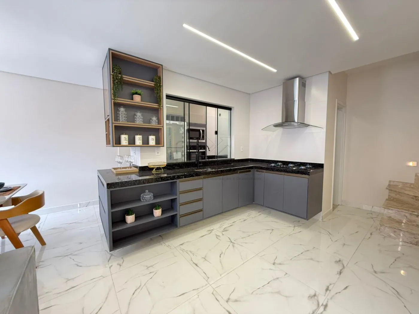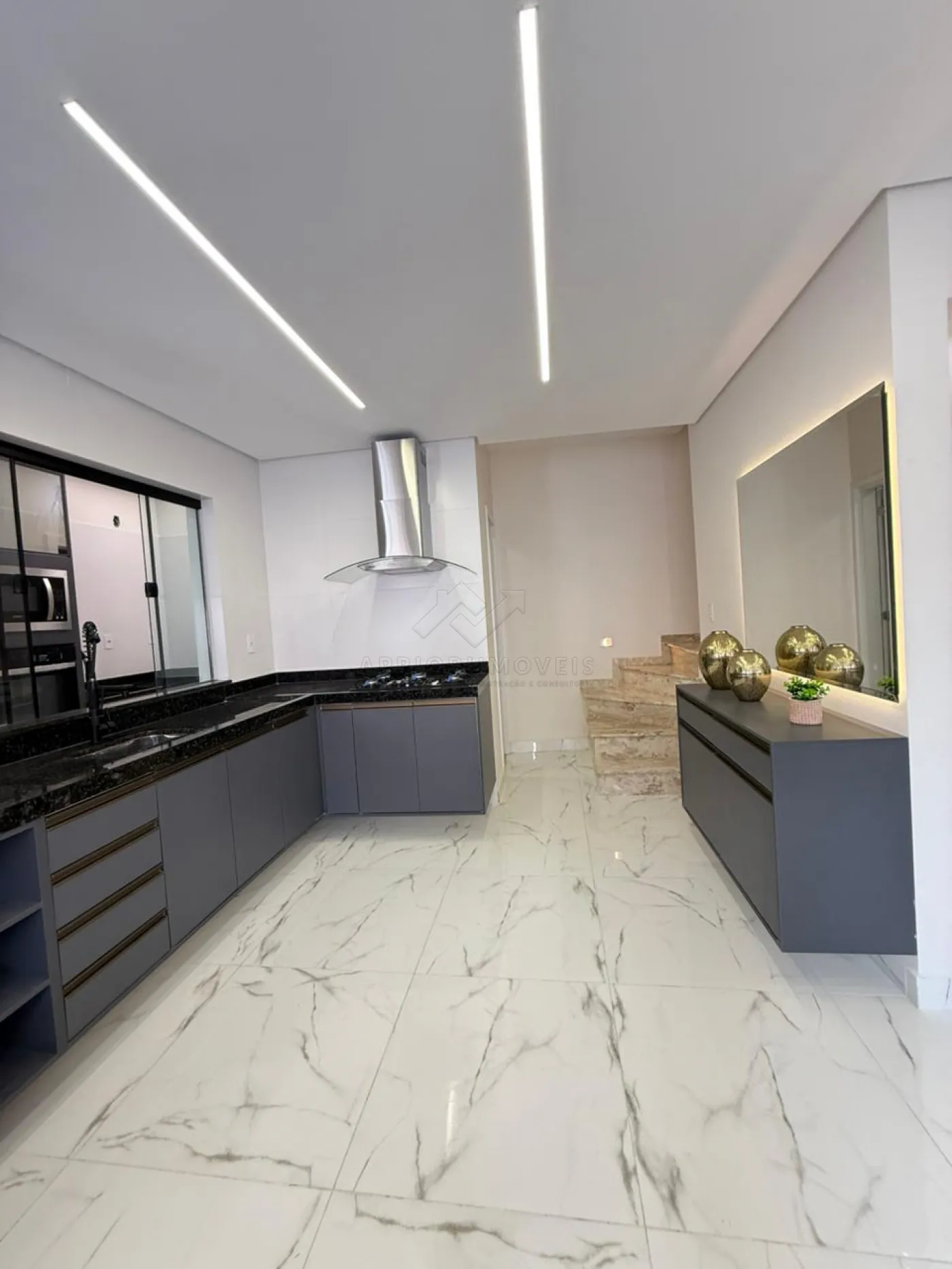 Cozinha com planejados, fogão e forno;