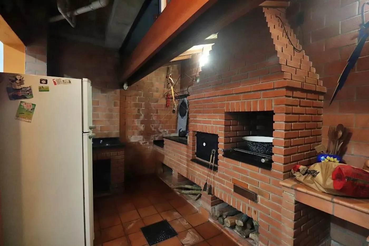 Área gourmet com churrasqueira e forno;