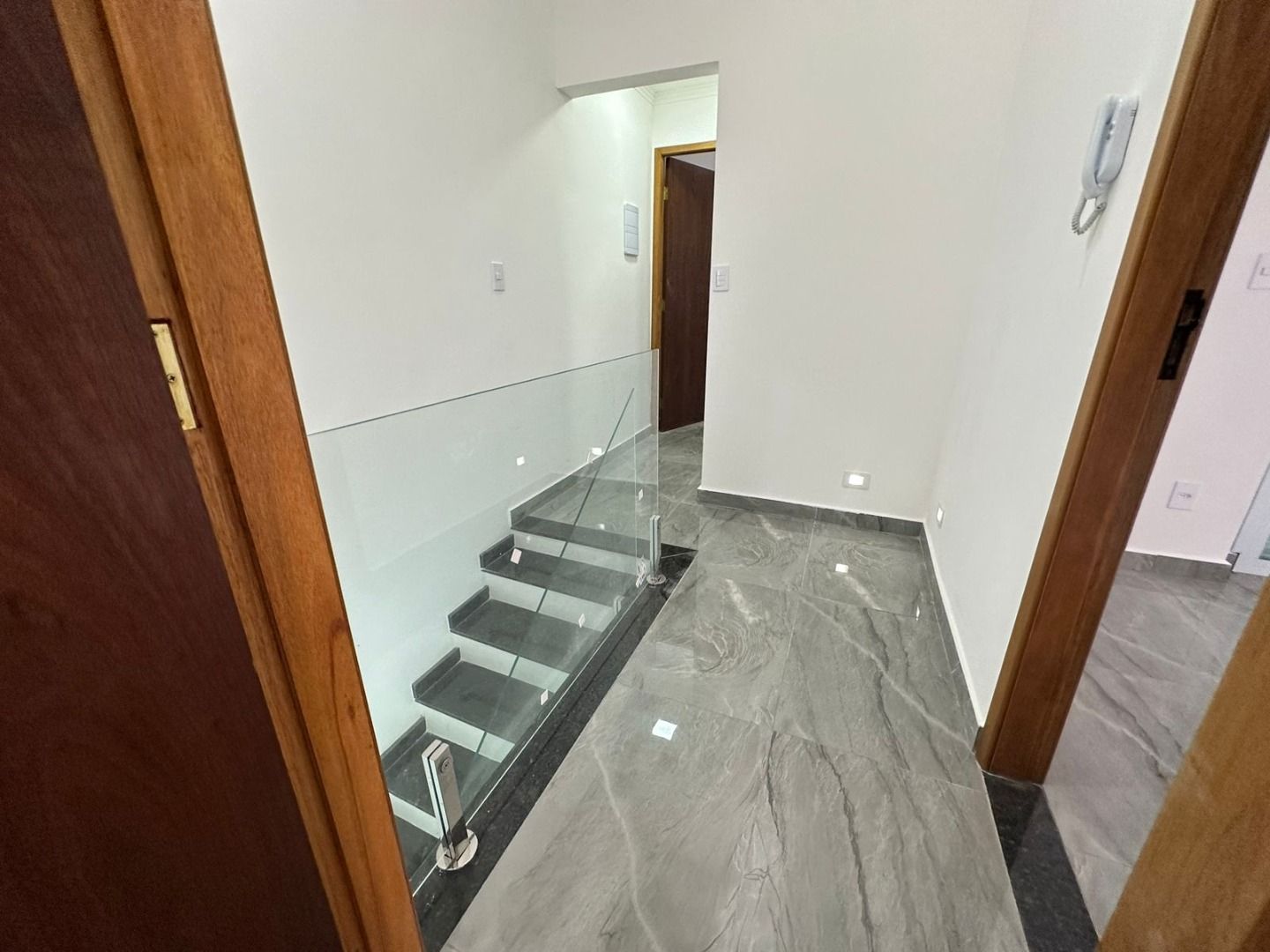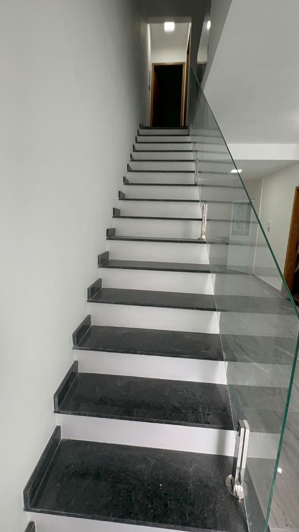 Guarda-corpos em vidro e aço inox;