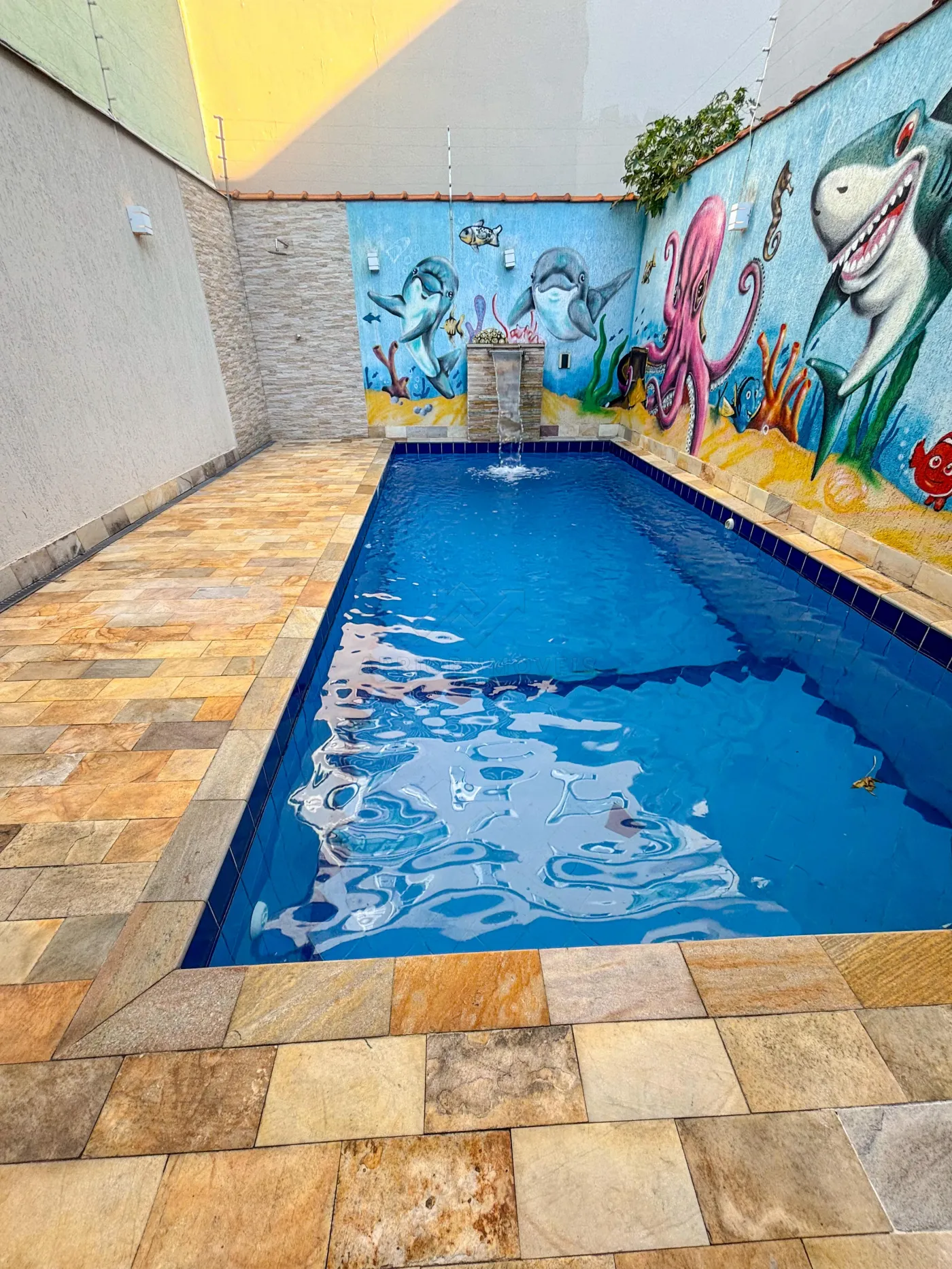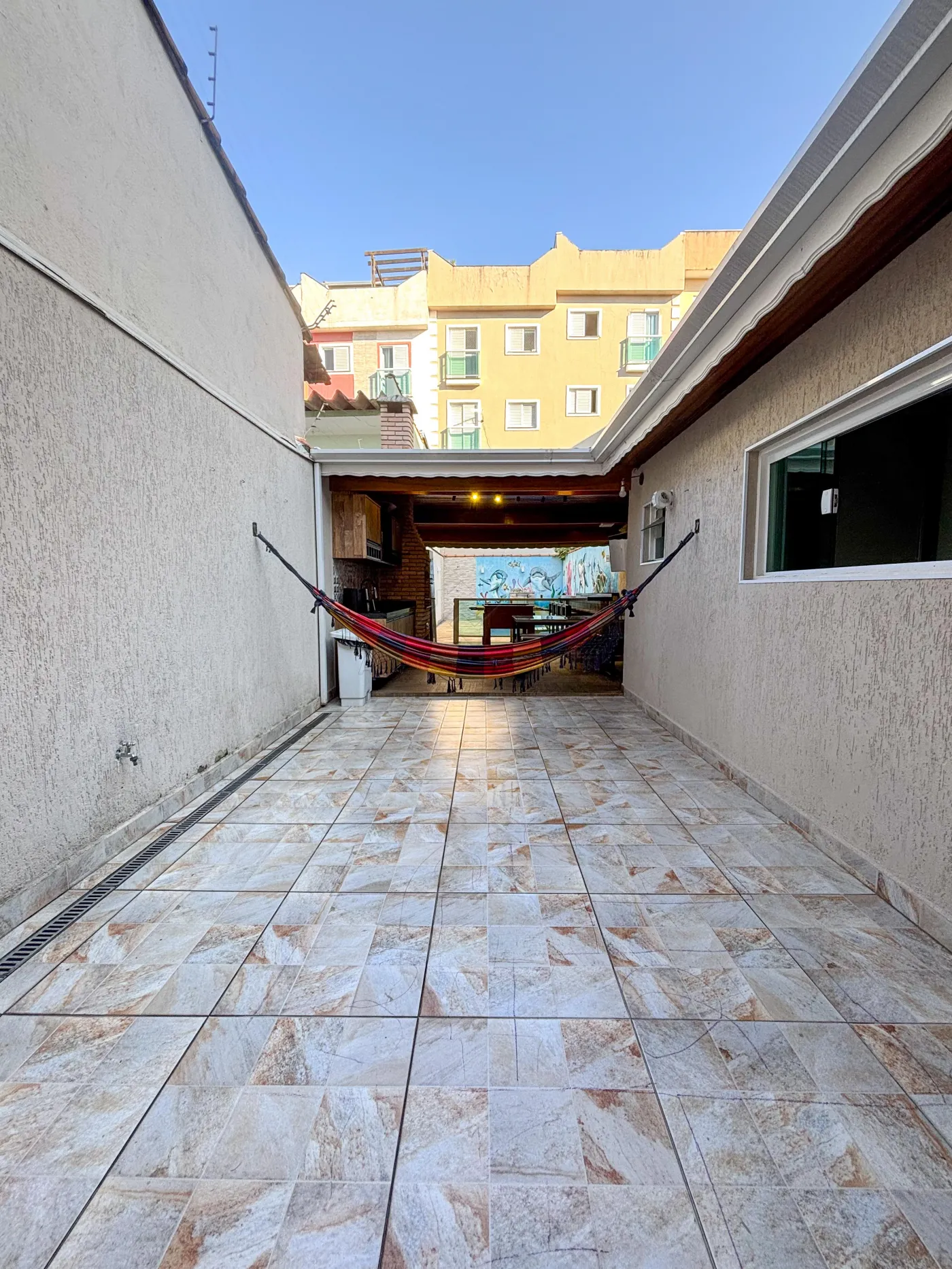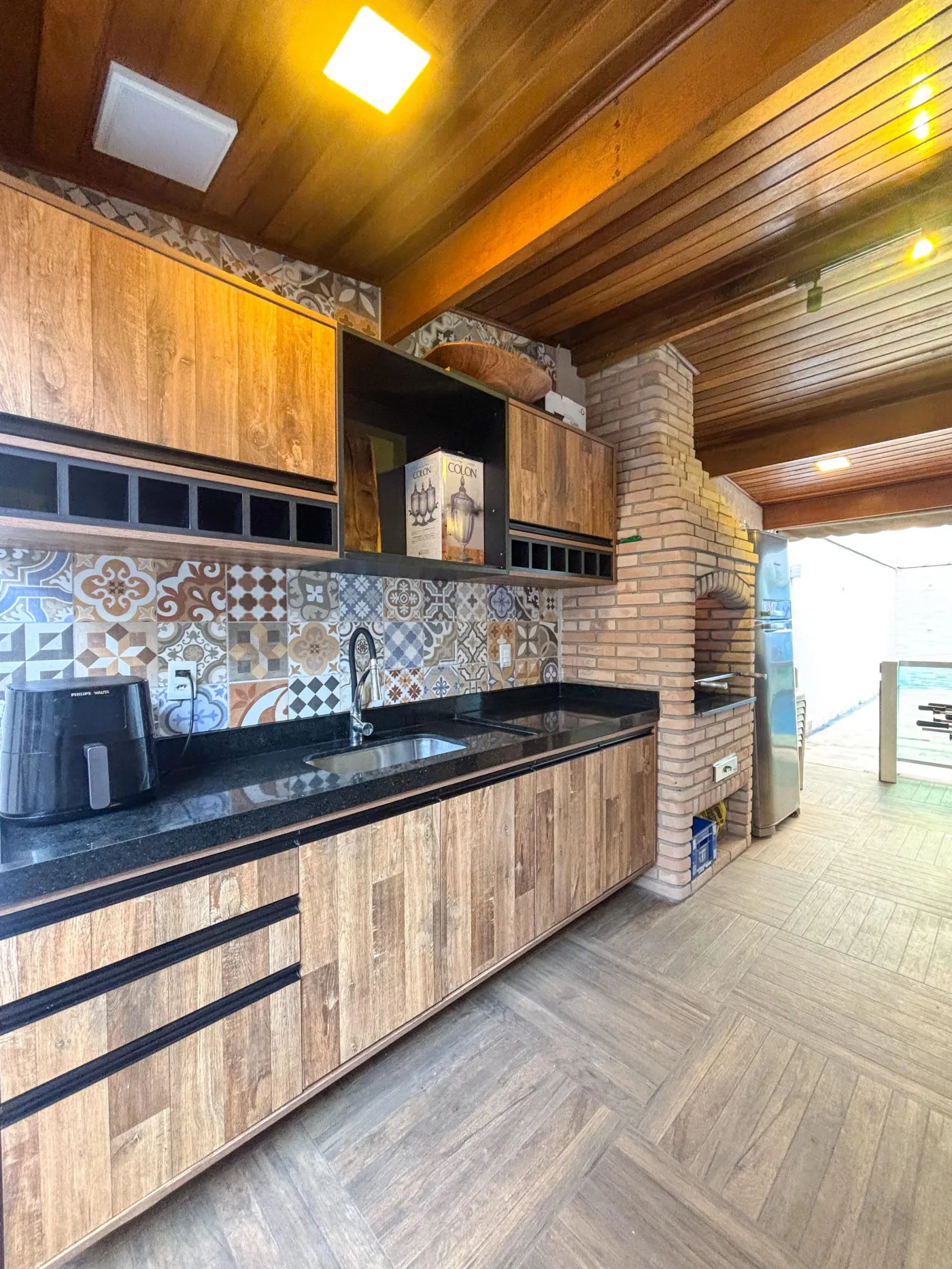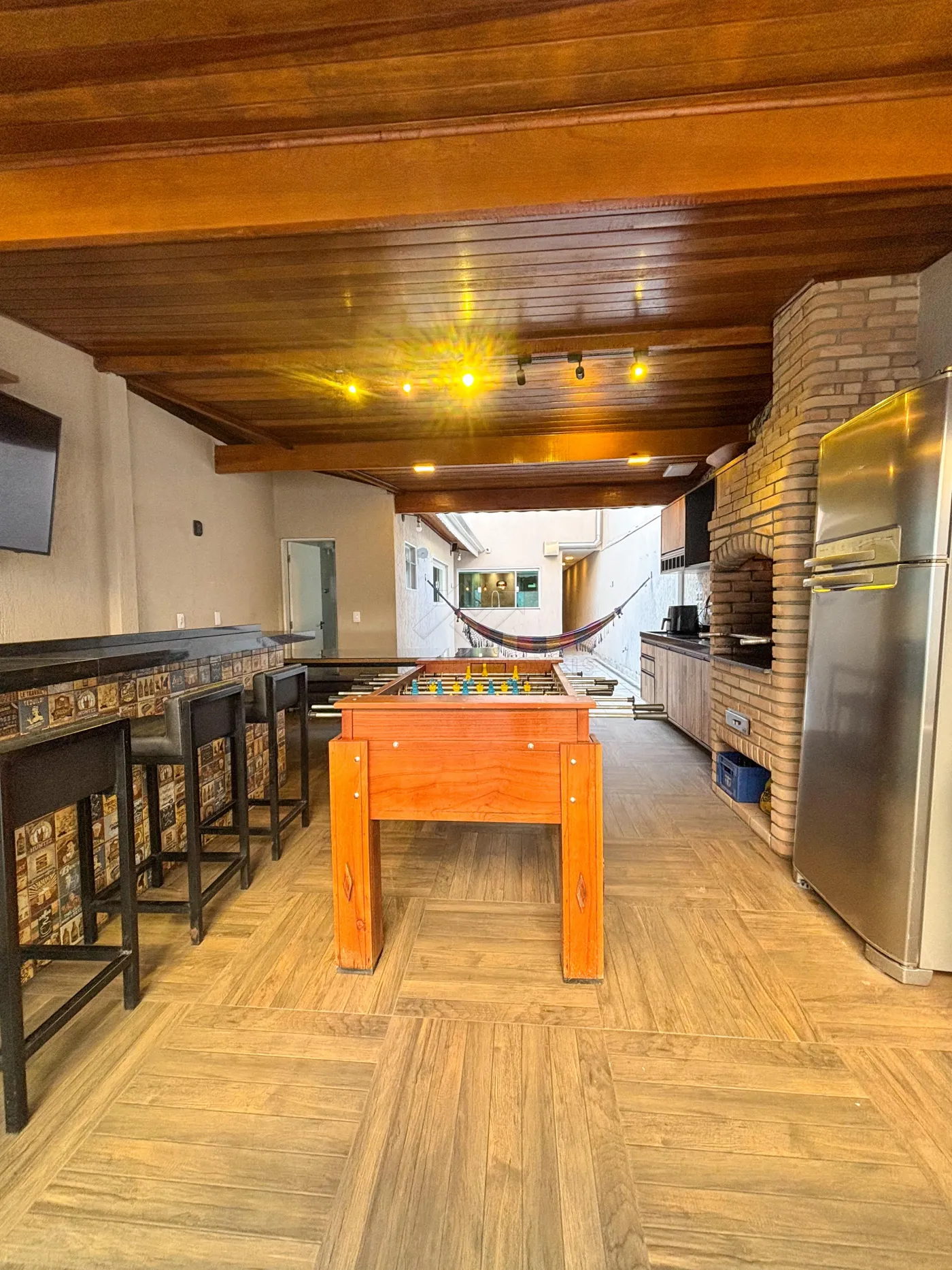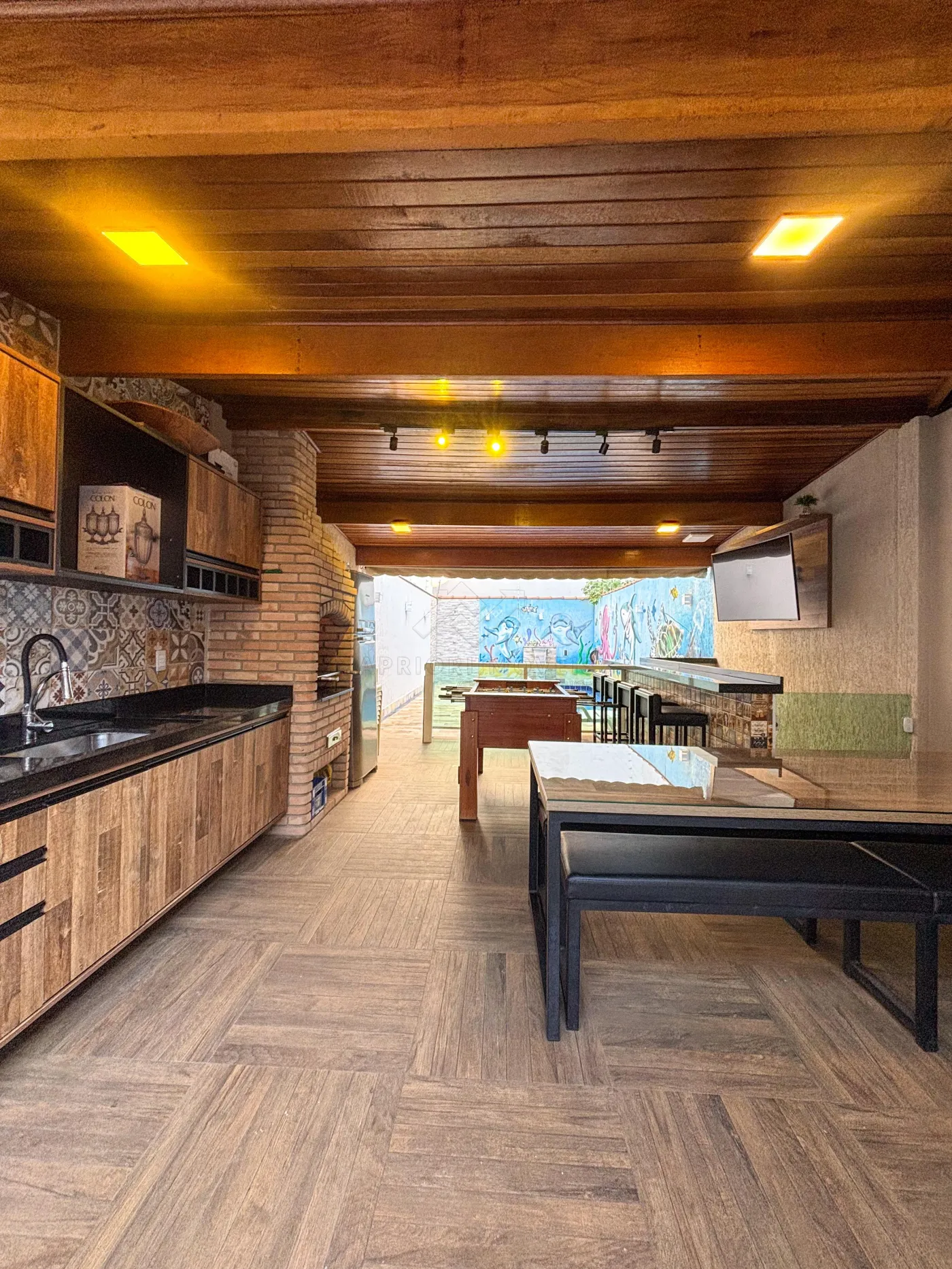 Ampla área gourmet com piscina no quintal;