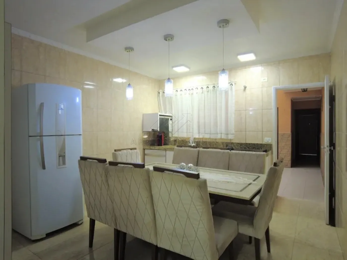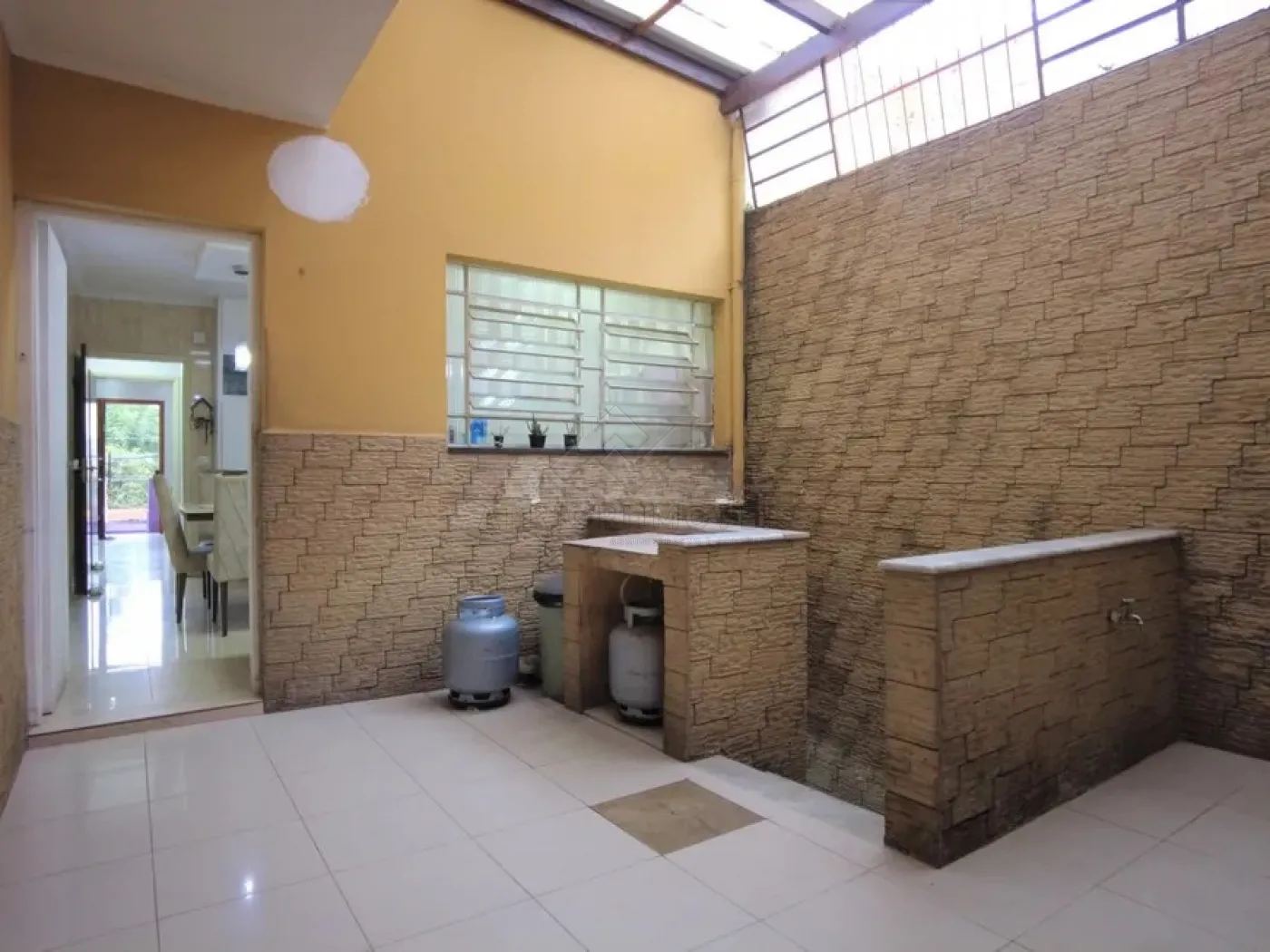 Cozinha com armários e acesso para quintal;