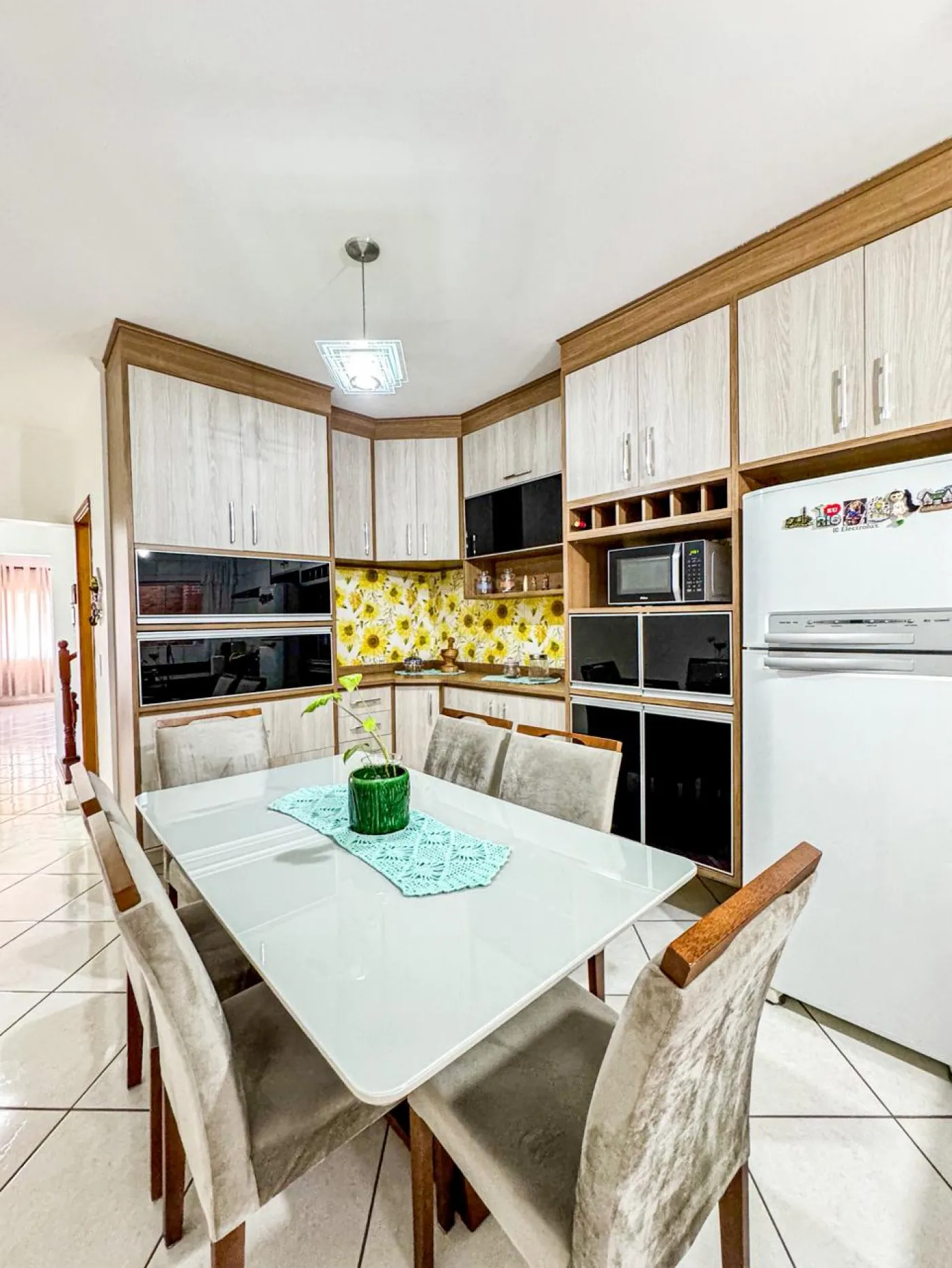 Cozinha com planejados, fogão e sugar;