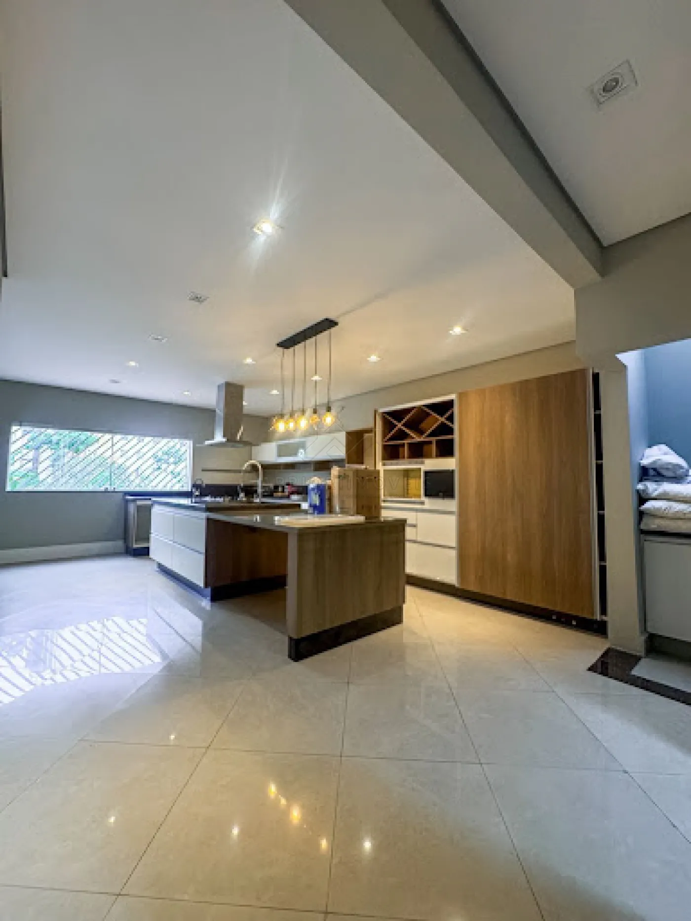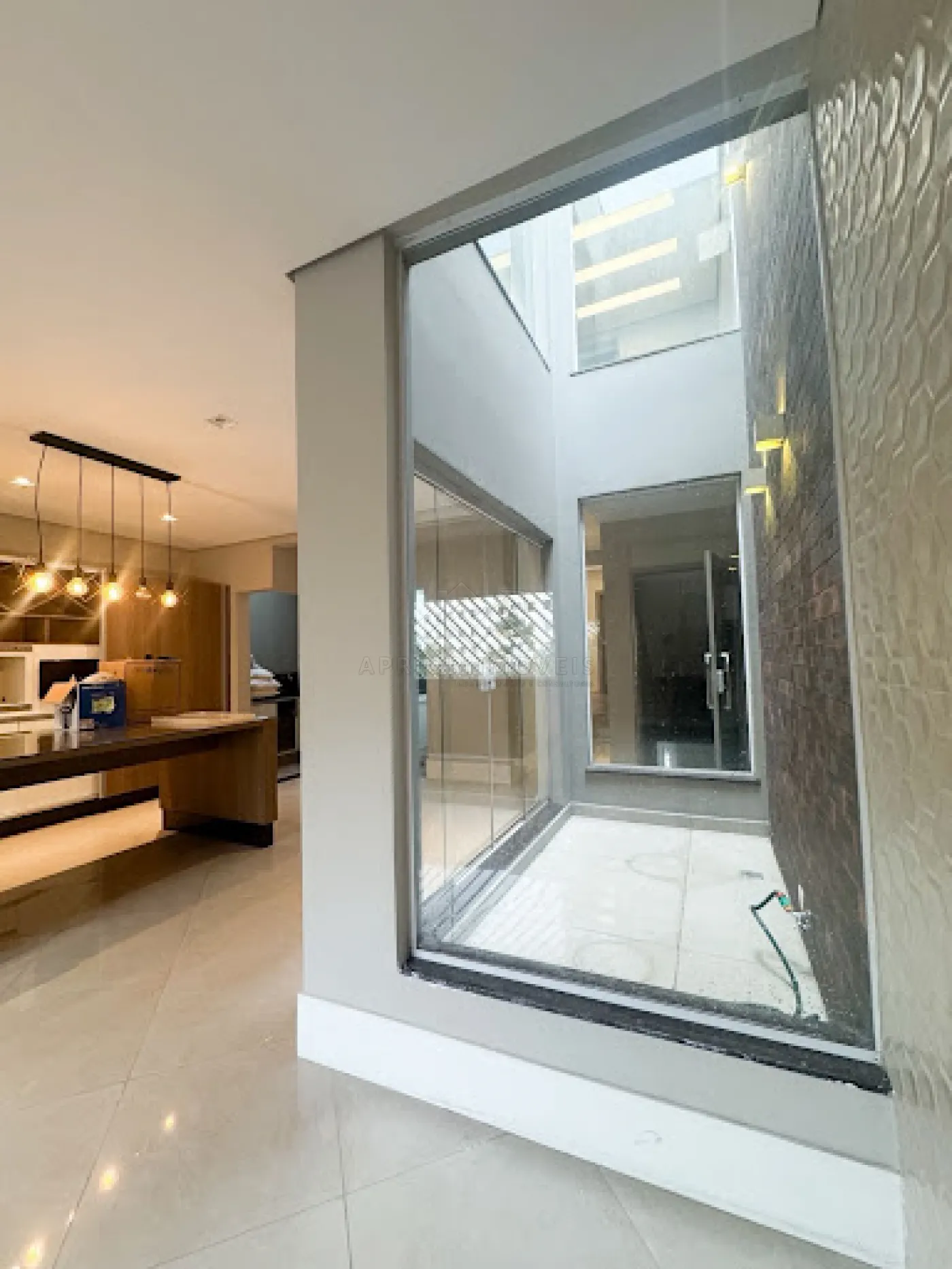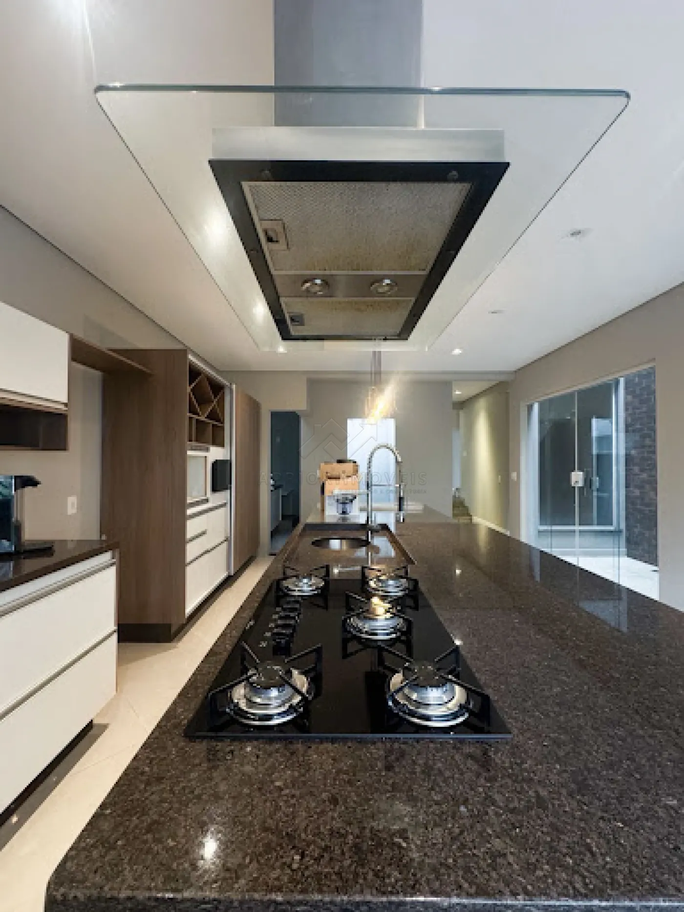Cozinha com ilha e jardim de inverno;
