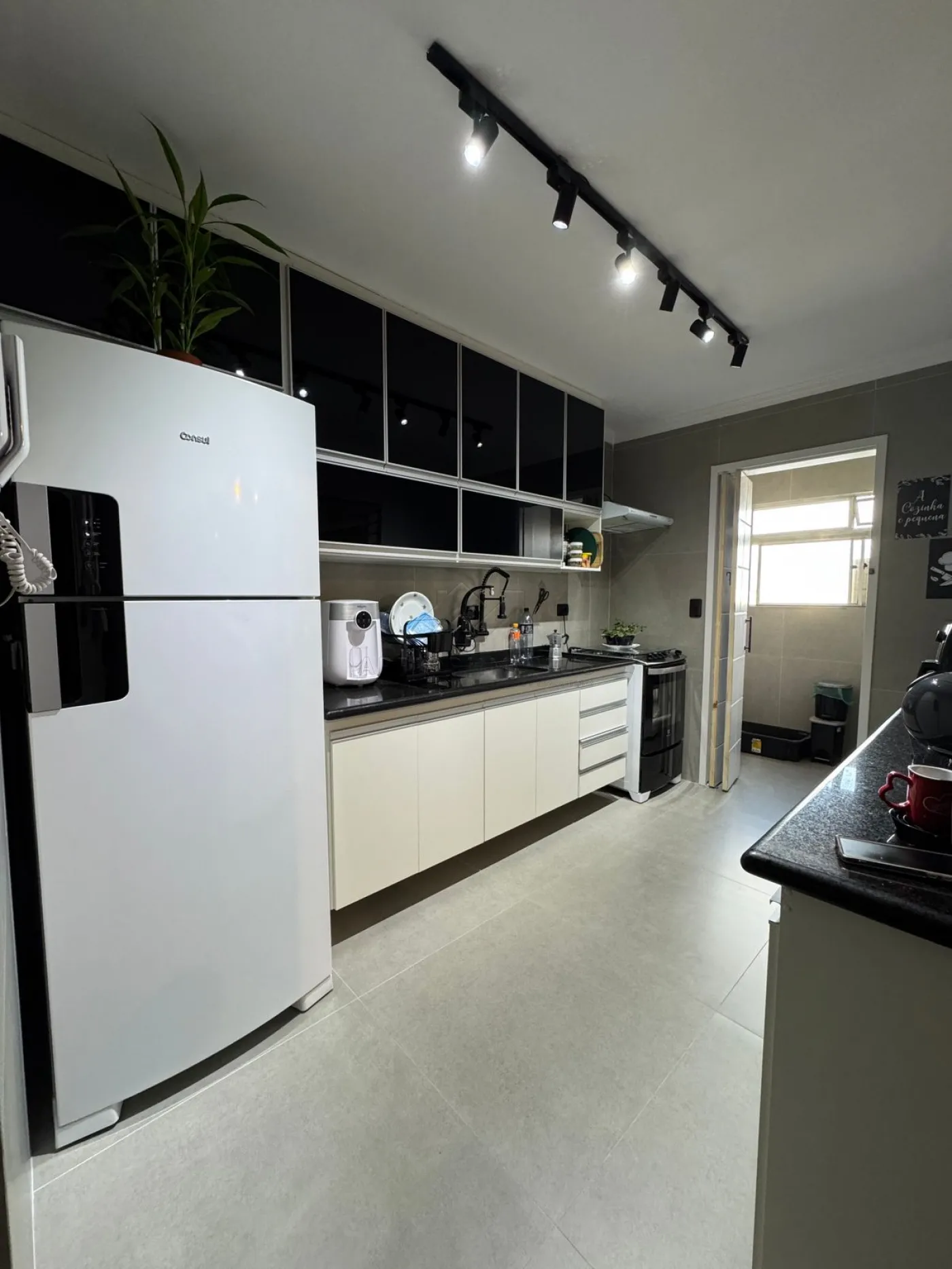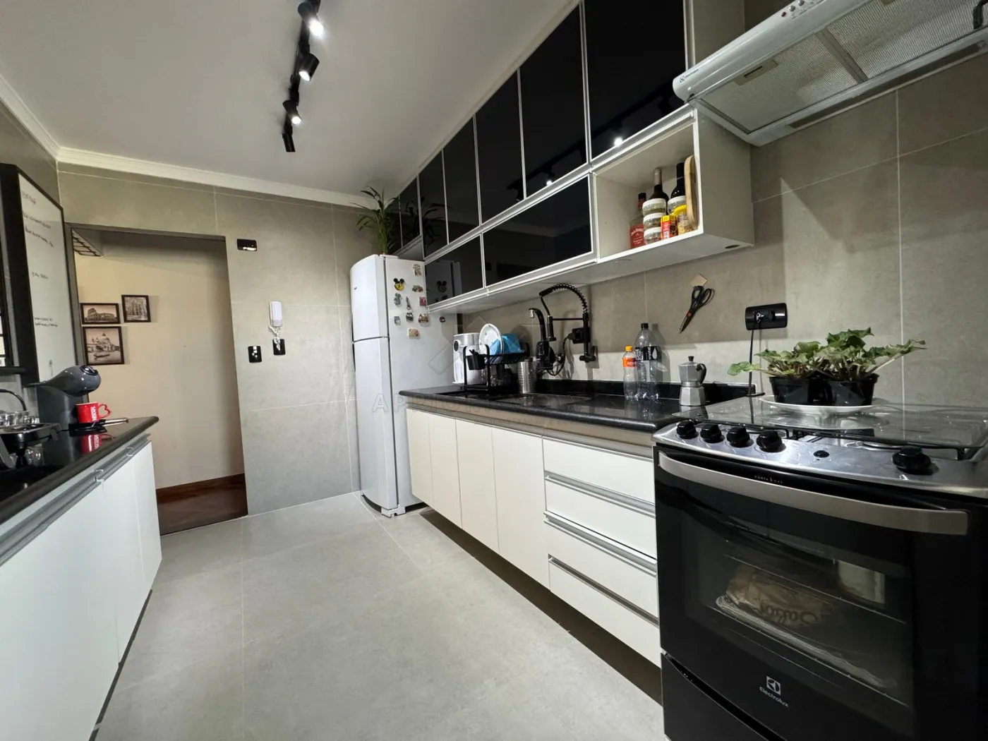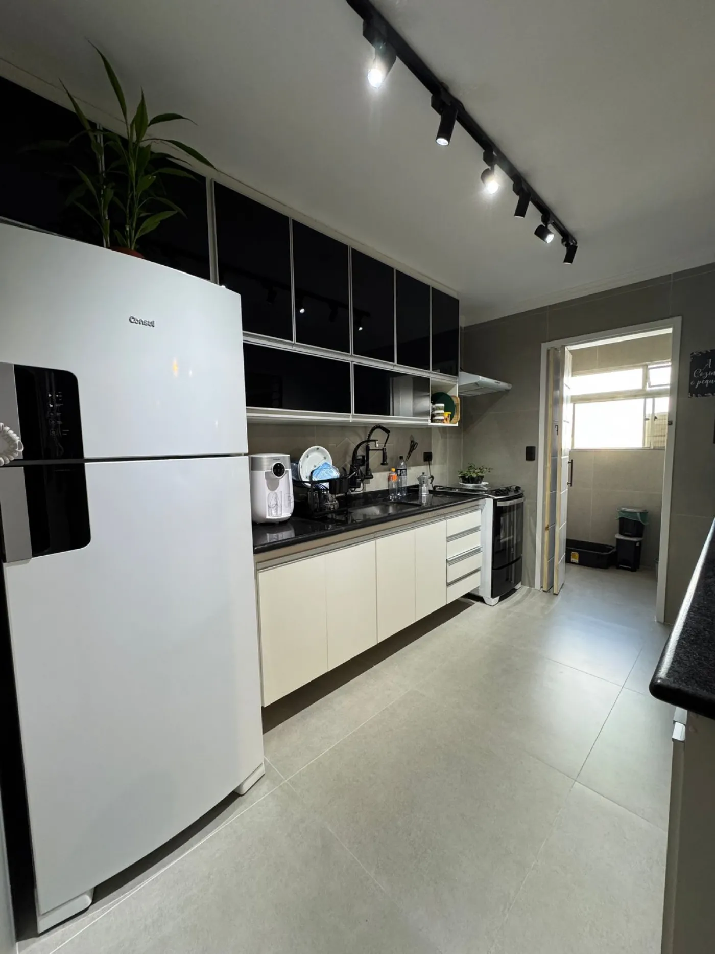 Cozinha com planejados, fogão e forno;