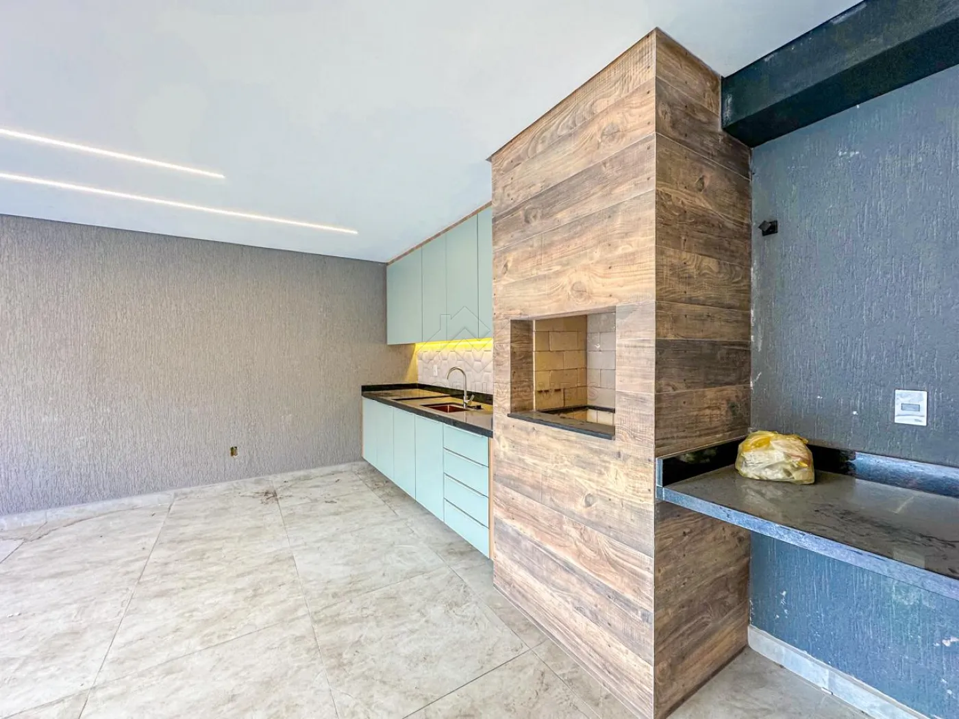 Área gourmet com churrasqueira, pia, balcão, lavabo;