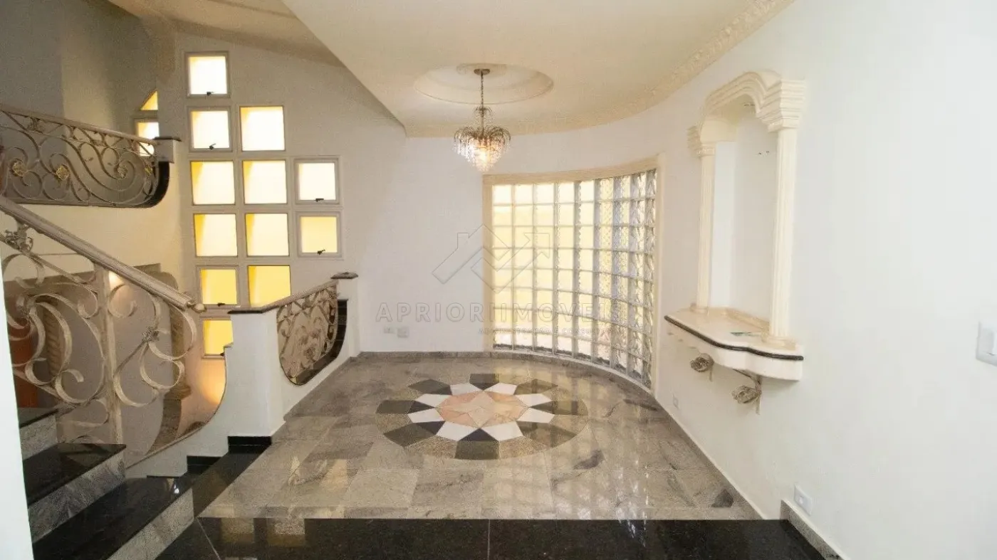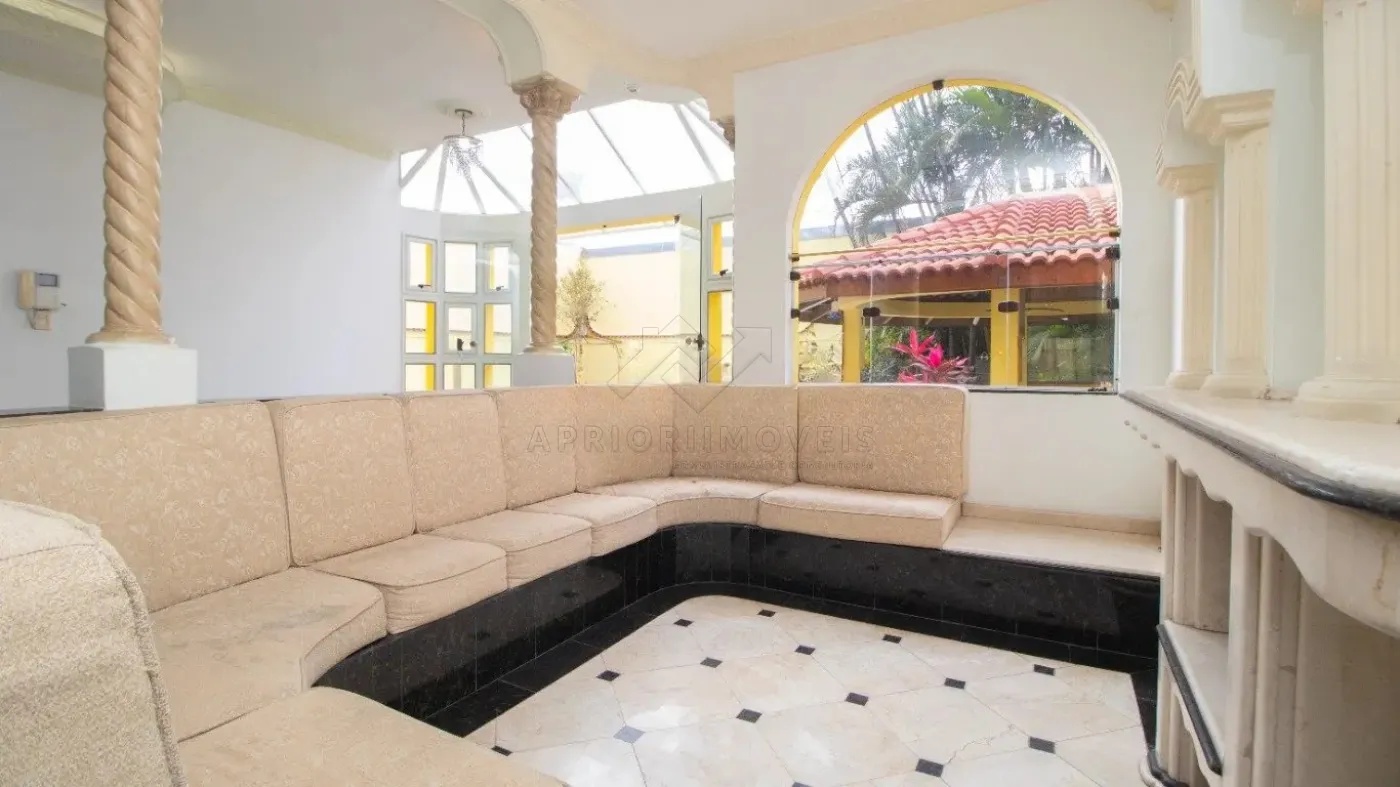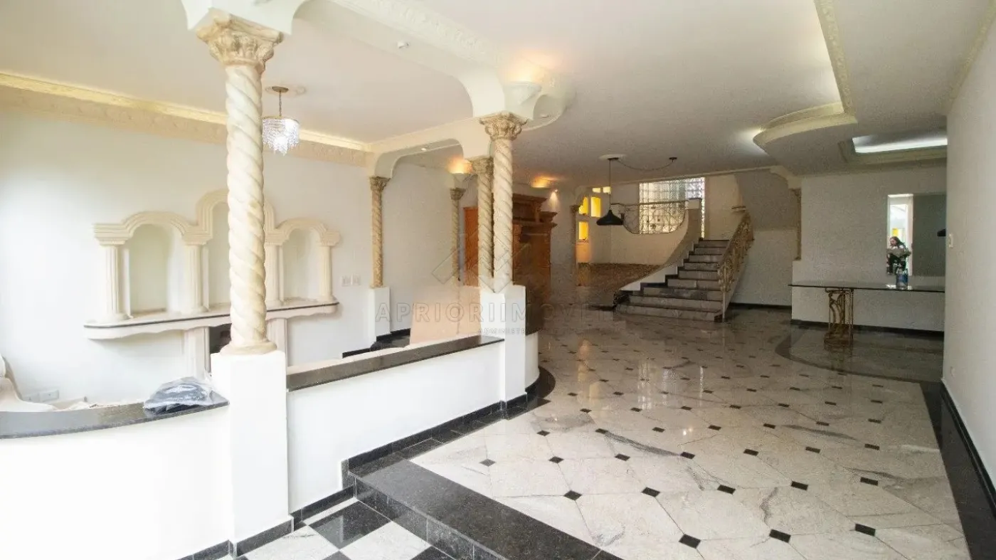 Hall de entrada e salas de estar, jantar e com lareira;