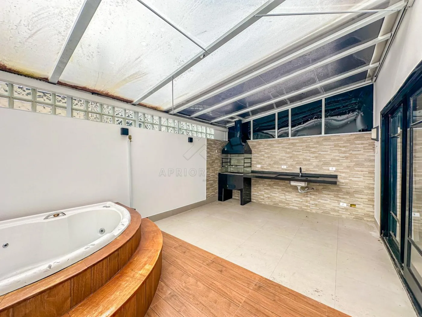 Varanda gourmet com jacuzzi;