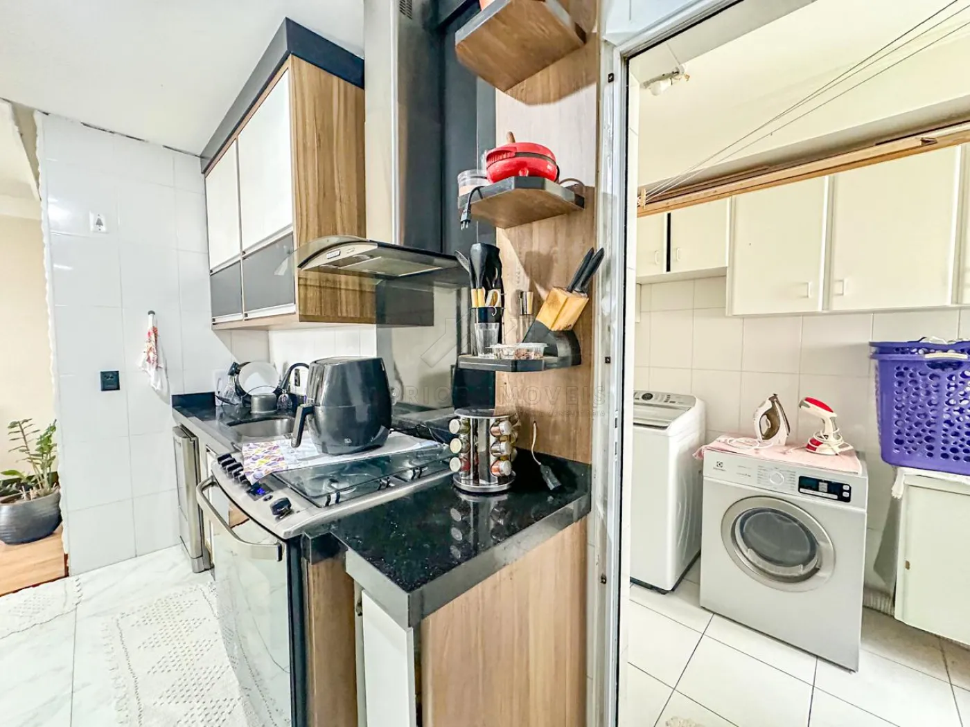 Cozinha com planejados, fogão e forno;