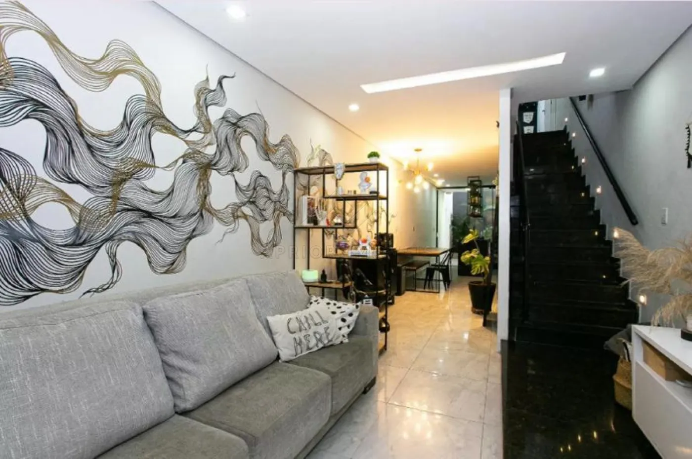 Sala com pintura pela artista Aline Tunin;